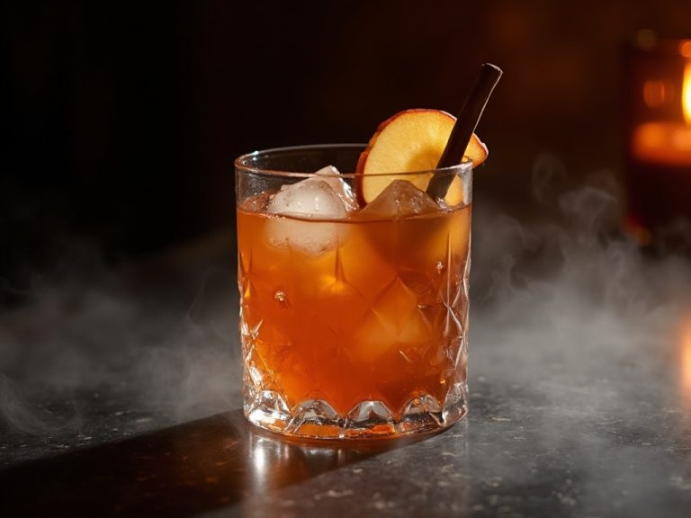 The Shadowed Orchard is a dark, comforting whiskey cocktail that captures the taste of fall in a glass.